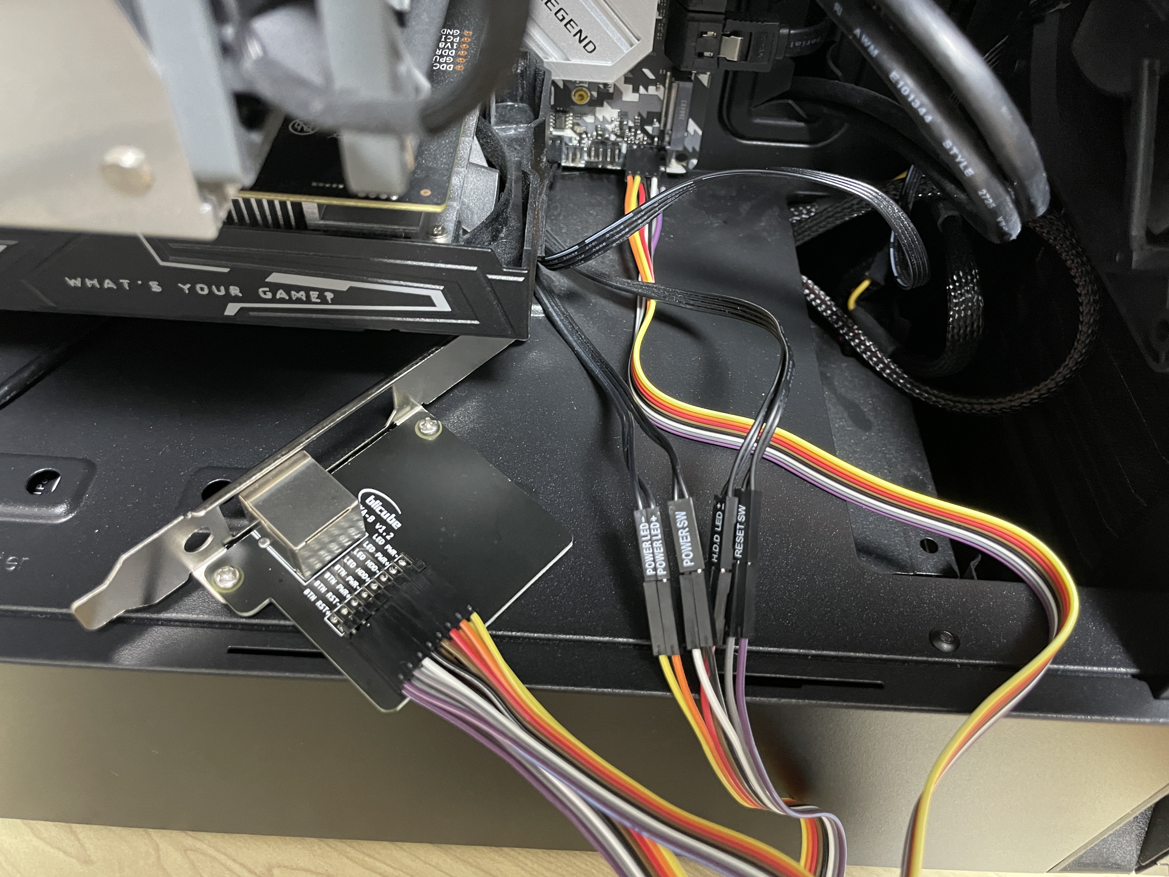 画面右上の電源ボタンで電源ON/OFF、ATX制御基板を取り付けてあるのでHDD LEDもリアルタイムに点滅する。ただし、電圧不足なのかPCケースのHDD LEDは点灯しなくなってしまった。